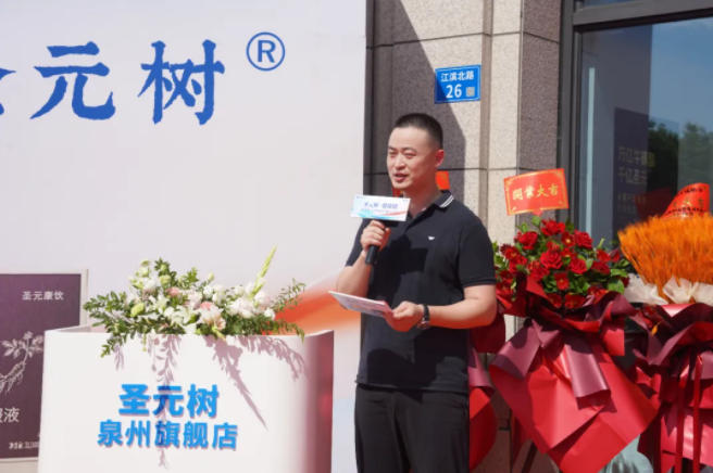 圣元树泉州旗舰店负责人朱卓伟则与现场领导嘉宾分享了创业初心与未来愿景。他动情表示,正是在朱煜煊董事长超强执行力与坚定信念的引领下,圣元树得以携手经销商伙伴,在全国多地布局品牌门店。“圣元树带来的不仅是产品,更是一种健康生活的新方式。”朱卓伟强调,“圣元树要成为牛磺酸的代名词,成为中国人健康生活的标杆。”