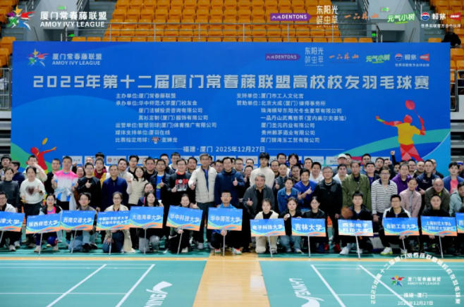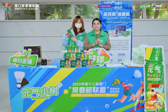 2025年12月27日,厦门工人体育馆内,第十二届厦门常春藤联盟高校校友羽毛球赛激战正酣。圣元药业旗下科学运动营养品牌元气小树作为赛事官方合作伙伴,以专业能量补给与全方位的品牌展示,为这场精英赛事注入了青春活力与科学能量。